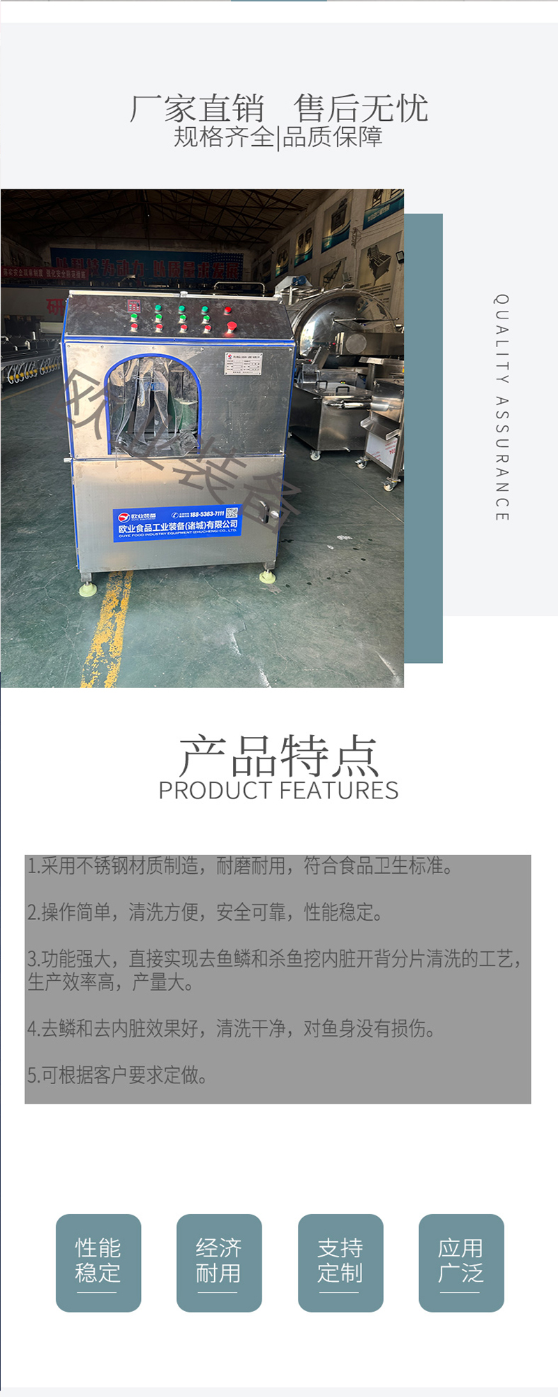 首先,它能夠?qū)崿F(xiàn)全自動(dòng)殺魚,大大提高了殺魚的效率和速度,同時(shí)保證了魚體的完整性和安全性。其次,全自動(dòng)宰魚機(jī)采用不銹鋼制造,符合食品衛(wèi)生標(biāo)準(zhǔn)。其操作簡(jiǎn)單,清洗方便,安全可靠,性能穩(wěn)定。首先,它能夠?qū)崿F(xiàn)全自動(dòng)殺魚,大大提高了殺魚的效率和速度,同時(shí)保證了魚體的完整性和安全性。此外,全自動(dòng)宰魚機(jī)的切割深度及左右傾斜度可根據(jù)不同魚種或加工工藝需求調(diào)節(jié),切面整齊光滑美觀。同時(shí),它具有產(chǎn)量大、效率高的優(yōu)點(diǎn),可廣泛應(yīng)用于魚類加工廠、大型超市、海鮮市場(chǎng)、火鍋店、烤魚店等。總的來說,全自動(dòng)宰魚機(jī)是一種高效、安全、方便的殺魚設(shè)備,能夠滿足不同場(chǎng)景的需求。
