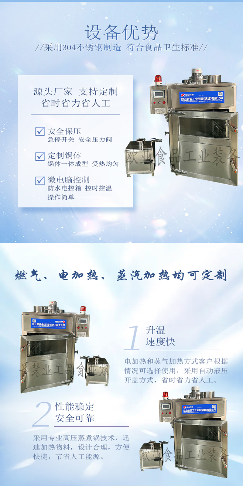 全自動(dòng)煙熏爐整機(jī)采用304不銹鋼制造,干凈衛(wèi)生,符合食品衛(wèi)生要求,堅(jiān)固耐用,耐磨耐腐蝕;采用全自動(dòng)微電腦控制,PLC操作界面,操作簡(jiǎn)單,運(yùn)行穩(wěn)定可靠;雙速電動(dòng)風(fēng)機(jī),大功率風(fēng)量使?fàn)t內(nèi)升溫,使各處溫度一致;集蒸煮、風(fēng)干、煙熏為一體,還具備編程控制功能,功能齊全,經(jīng)濟(jì)實(shí)用。