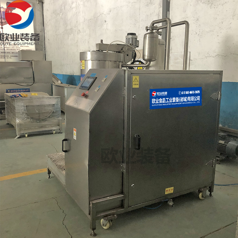 三、降低油脂劣變程度:炸用油的劣化包括氧化、聚合、熱分解,而以水或水蒸汽與油接觸產生水解為主。在真空油炸過程中,油處于負壓狀態,溶于油脂中德氣體很快大量逸出,產生的水蒸汽壓力較小,而且油炸溫度低,由此,油脂的劣化程度大大降低。
